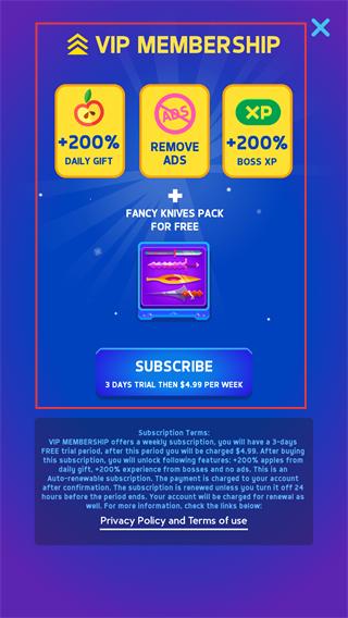 3、开通【VIP-MEMBERSHIP】可免费获得【FANCY-KNIVES-PACK】,解锁专属飞刀。