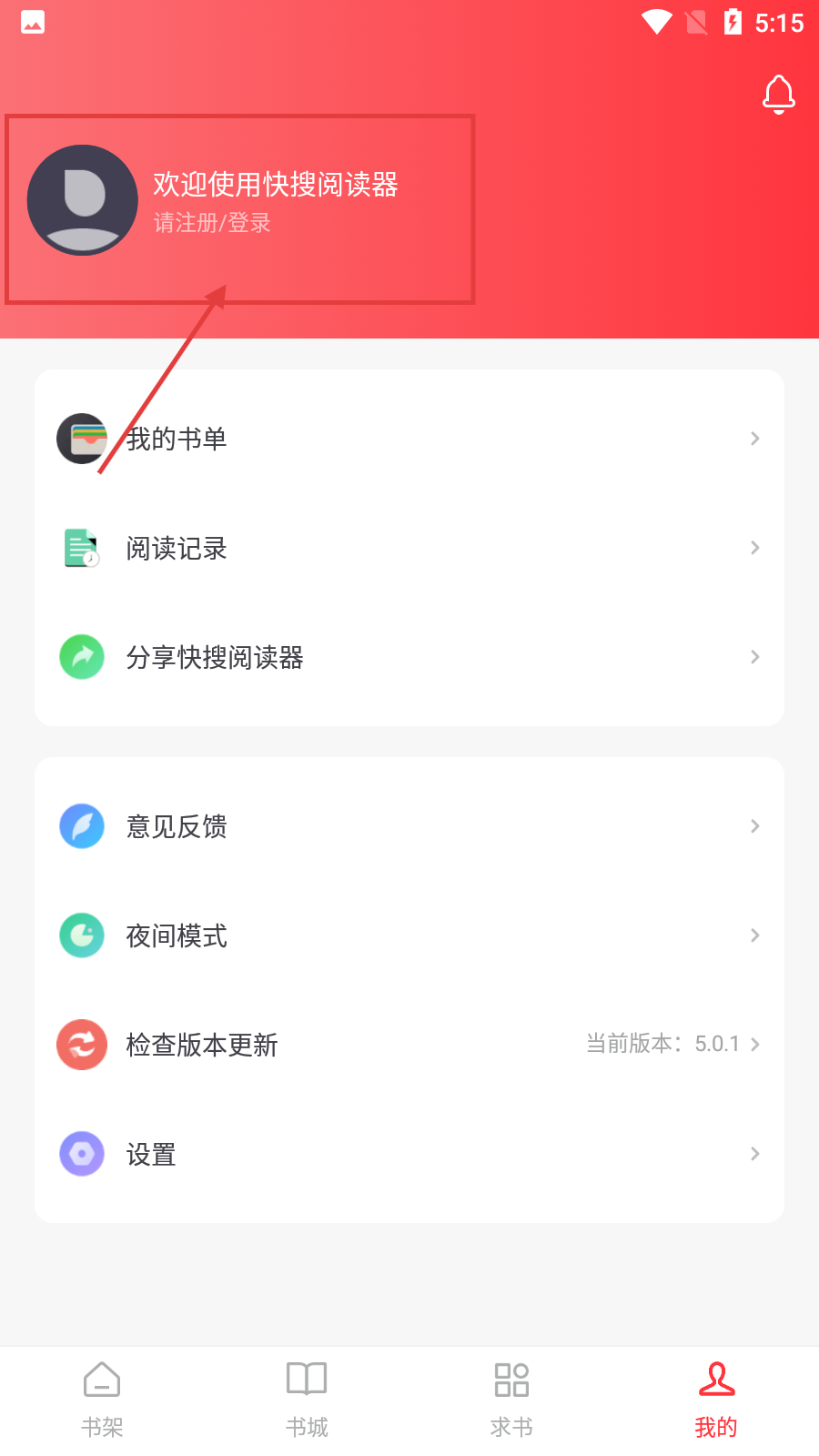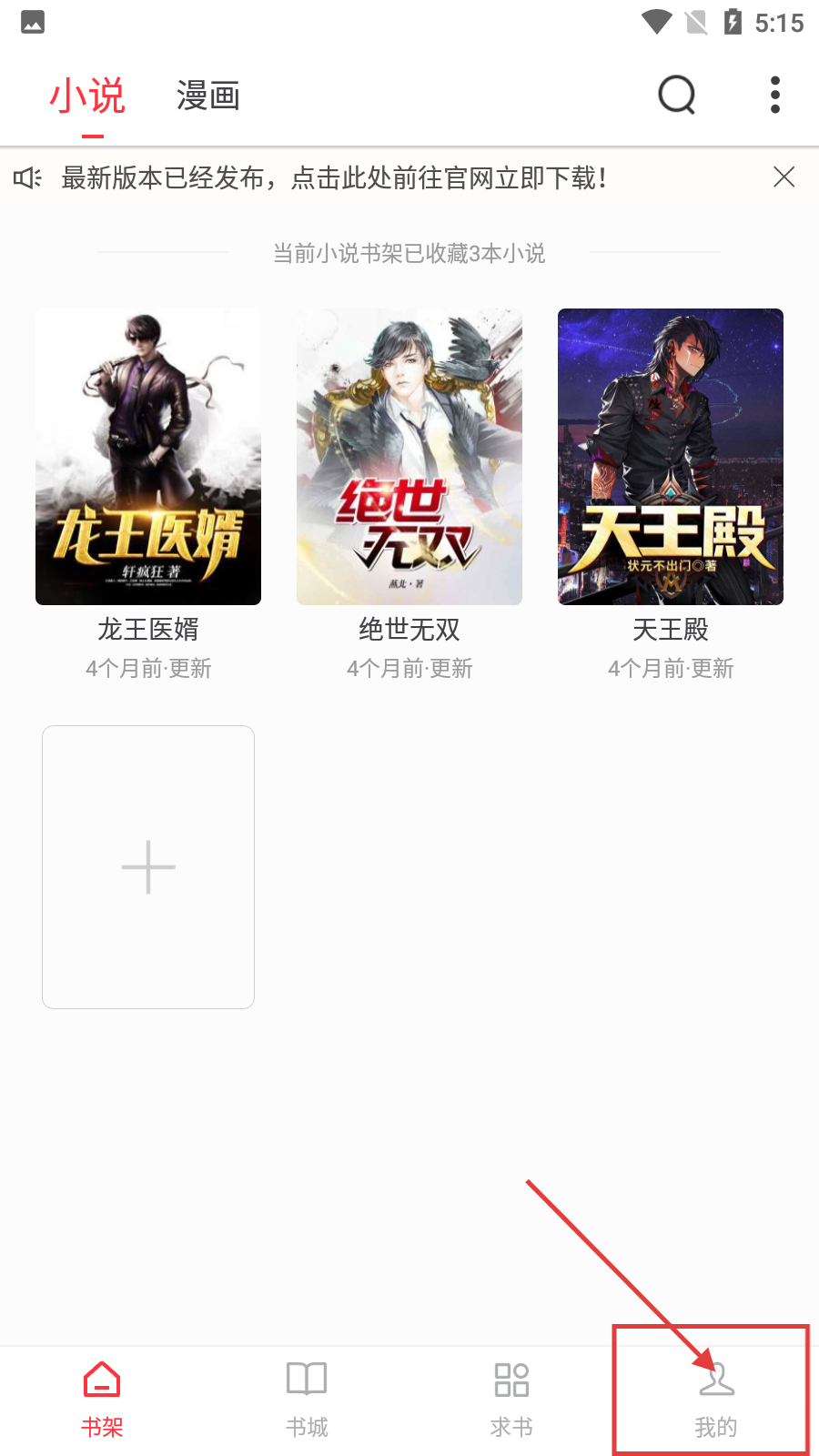 1、在软件书架界面,点击右下角【我的】,可进入个人中心界面。