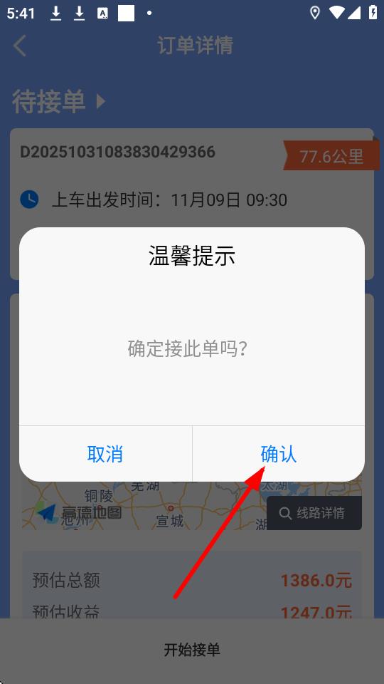 4、在订单详情的温馨提示中,点击【确认】即可接此单。