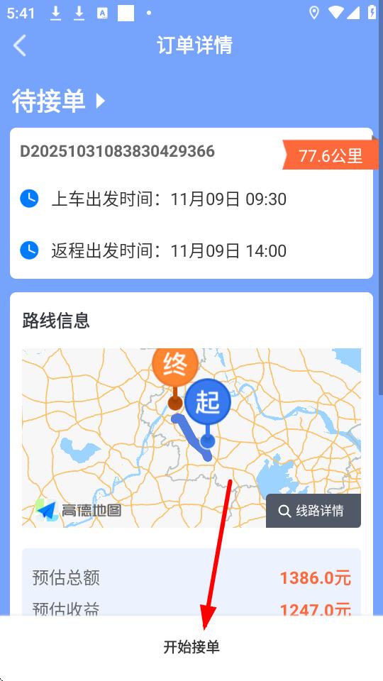 3、在订单详情页,点击【开始接单】可进行接单操作。