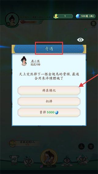 2、奇遇获【金翅鸟】骨头,选【将其炼化】淬炼体魄,提升属性,利修行。