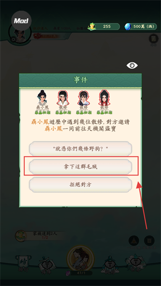 1、遇散修邀盗宝,选【拿下这群毛贼】触发战斗,实力不足则战败,需慎选。