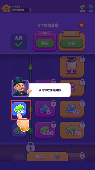 3、领取旅馆基金奖励,获取资源,用于升级和扩展旅馆。