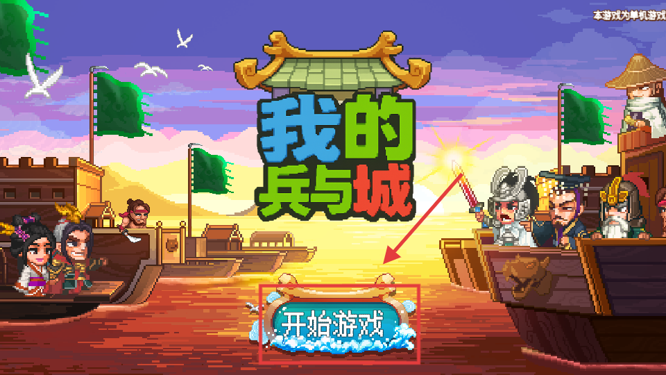 1、点击【开始游戏】按钮,进入游戏,开启江东势力的经营、武将招募与战斗冒险。