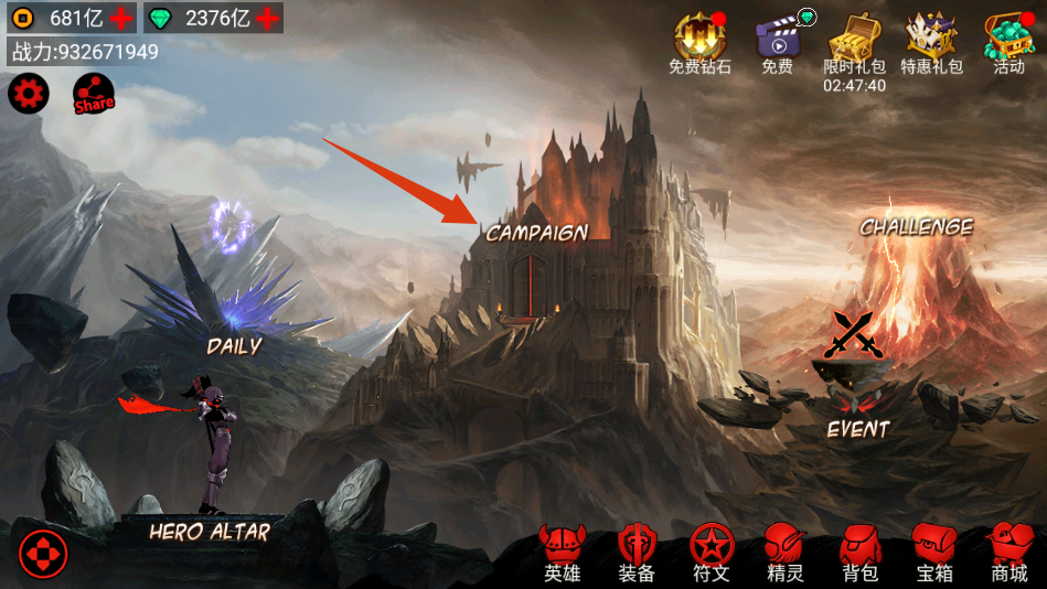 1、点击【CAMPAIGN】进入主线战役模式,开始挑战关卡。