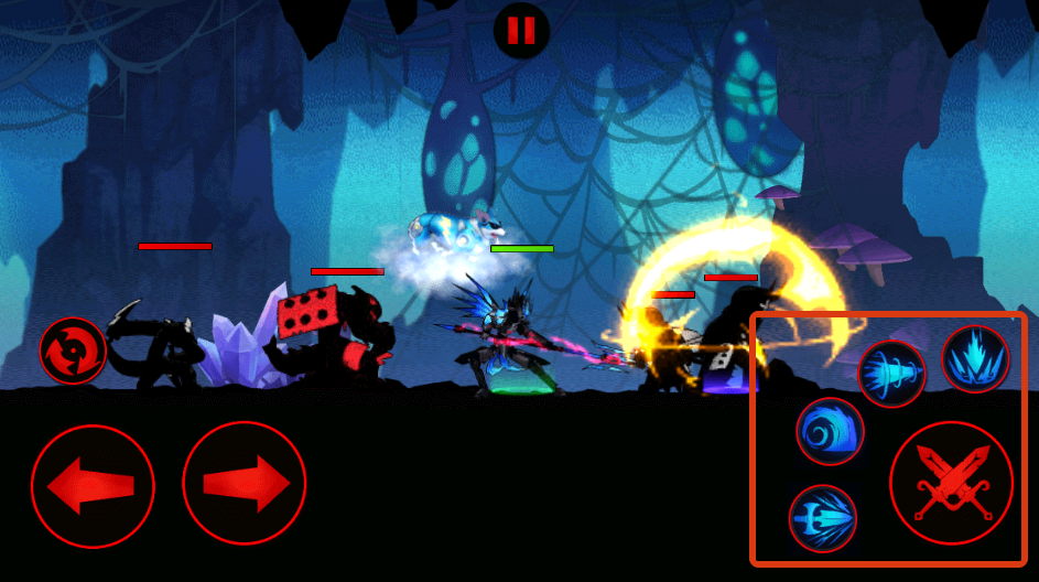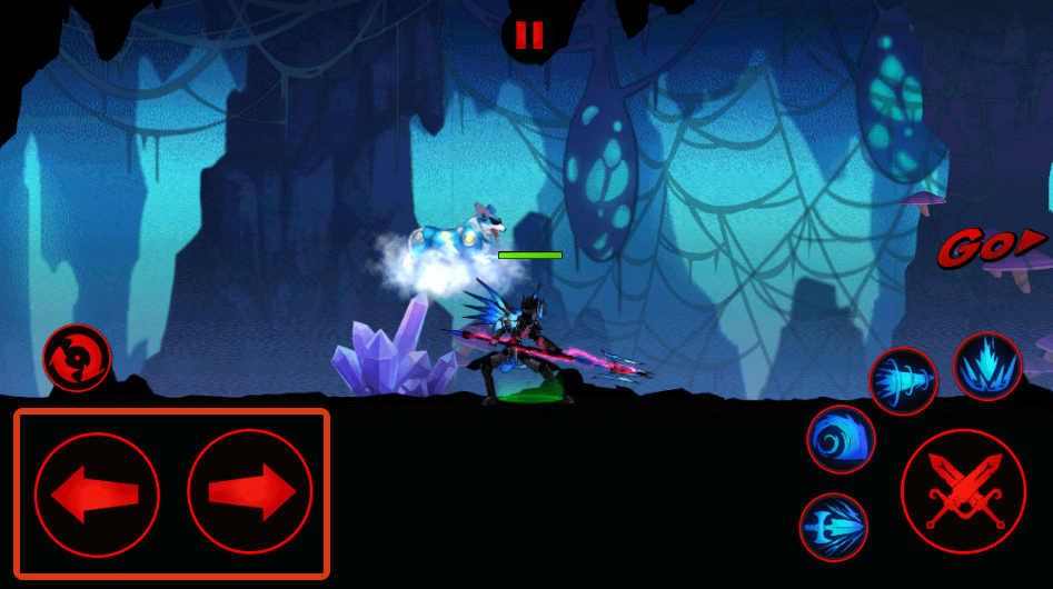 2、在战斗场景中,通过左侧的左右方向按钮控制角色移动,躲避敌人攻击并调整战斗位置。