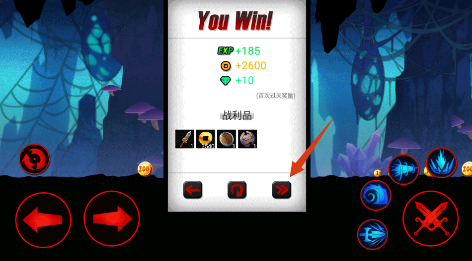 4、成功通关后,可获取经验、金币、钻石等奖励,点击箭头按钮进入下一关继续挑战,不断提升战力和解锁新内容。
