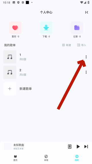 2、在个人中心页面,点击【目标歌单的更多图标】,弹出操作选项菜单。