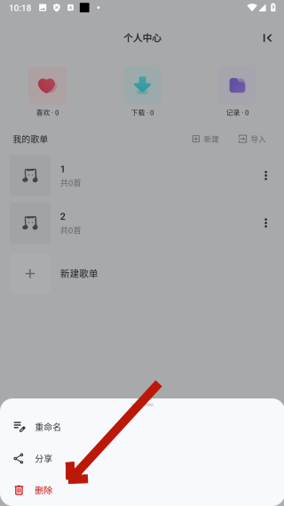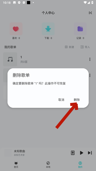 4、在弹窗中,点击【删除】,即可完成歌单删除操作。