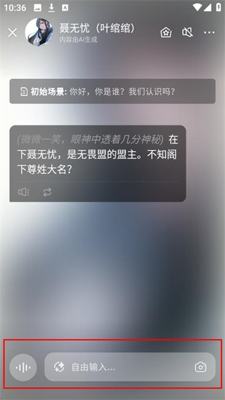 2、在互动界面的输入框自由输入内容,就能和角色互动,开启趣味对话啦。