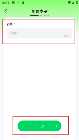 4、在创建麦子页面输入名称后点击【下一步】,就能继续完成虚拟伙伴的创建啦。