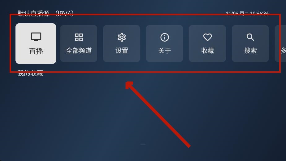 4、可进入【直播、全部频道】等界面,进行【设置、收藏、搜】索等操作,提升使用体验。