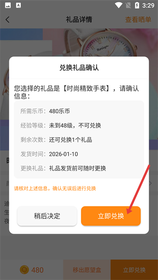 4、点击“立即兑换”,完成礼品的兑换流程。