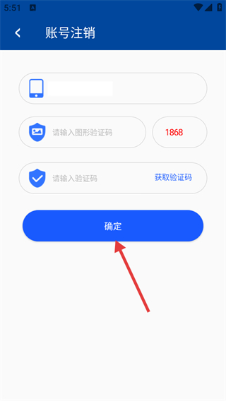 4、在账号注销界面,填写相关验证信息后点击【确定】按钮,可完成账号注销操作。