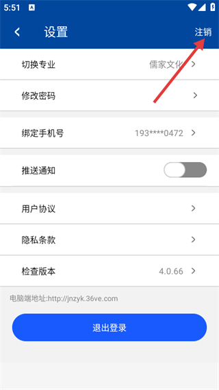 3、在设置界面,点击【注销】选项,可进入账号注销流程界面。