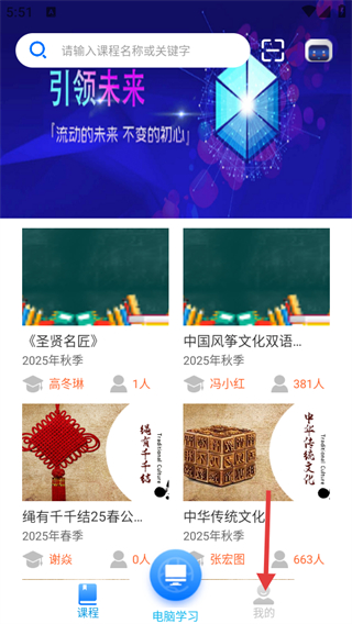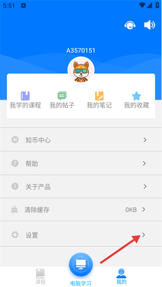 1、在课程页面,点击底部【我的】选项,可进入个人中心界面。