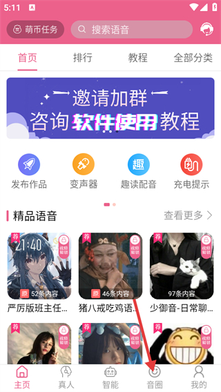 1、在主页,点击底部【音圈】选项,可进入音圈动态页面。
