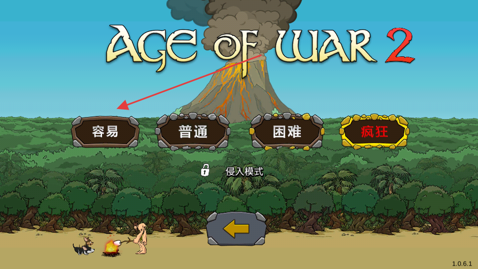1、选择“容易”难度进入《AgeofWar2》游戏,开启战争策略冒险,新手可先从低难度熟悉游戏机制。
