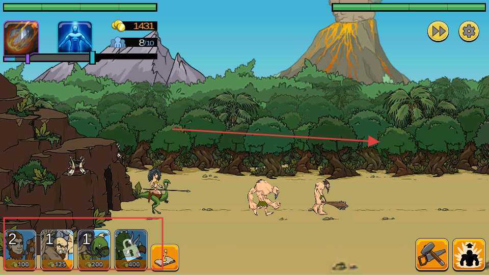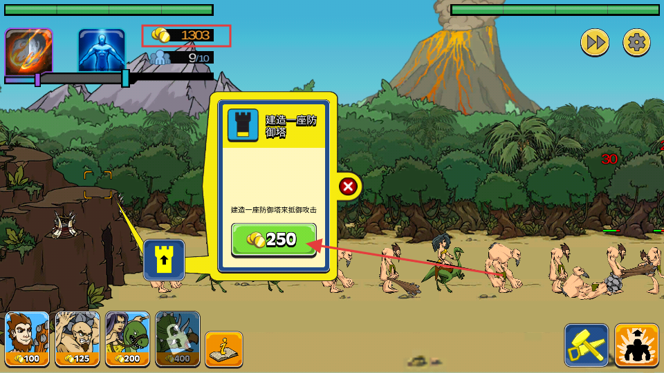 2、在战斗中,消耗金币召唤不同兵种,向敌方发起进攻,同时注意防守己方阵地。