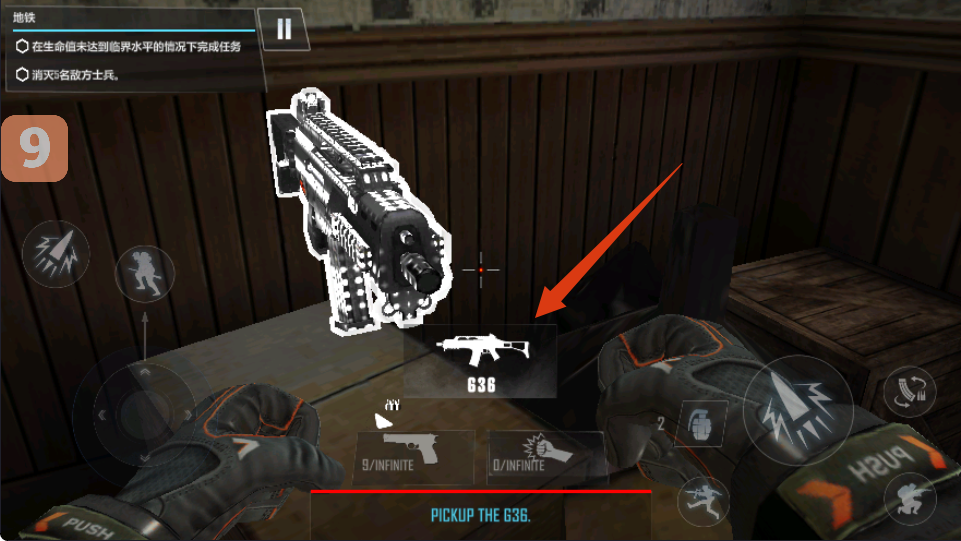 2、拾取强力武器(如G36),提升自身火力,为战斗做好准备。