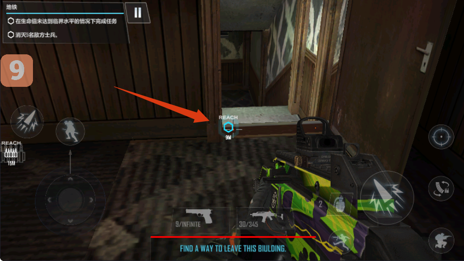 3、沿着任务提示的路径前进,寻找离开建筑的路线,同时注意周围环境,警惕敌人出现。