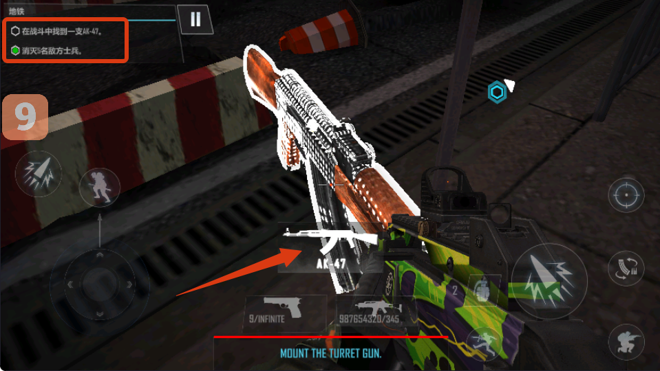 4、在战斗中寻找并拾取强力武器(如AK-47),提升自身火力,同时完成“找到AK-47”的任务目标,顺利推进任务。