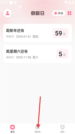 2、在首页,点击底部【倒数本】选项,可进入倒数本管理页面。
