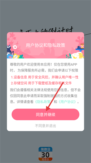 1、阅读【用户协议】与【隐私政策】,点击【同意并继续】按钮进入。