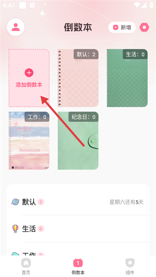 3、在倒数本页面,点击【添加倒数本】选项,可进入添加倒数本的编辑界面。
