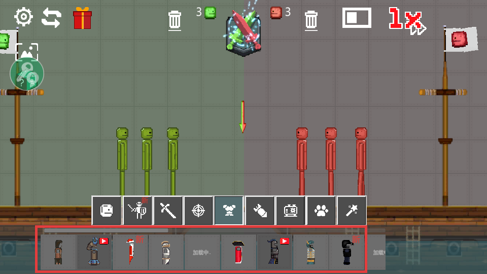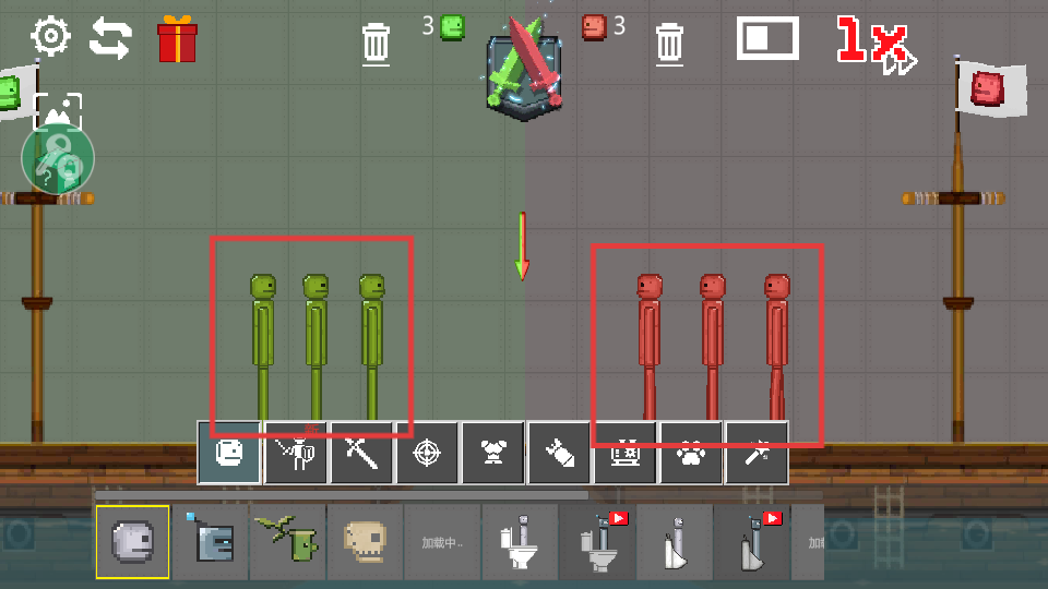 1、部署绿色和红色的小人单位,合理安排双方单位的数量和位置,开启对战。