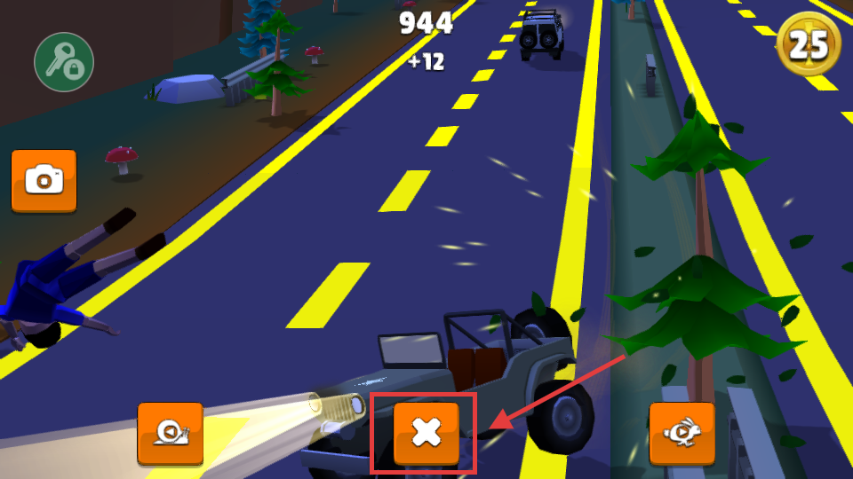 4、行驶中躲避树木、车流等路障,收集金币,碰撞后点击叉号继续,注意路况变化。