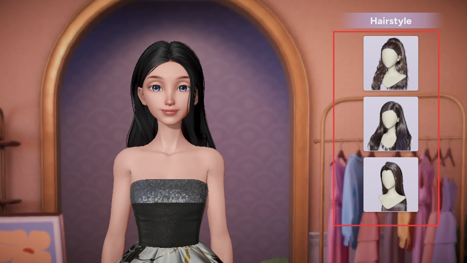 3、选择发型,为角色搭配合适的发型,提升整体造型的时尚度。