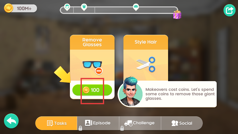 2、花费金币进行移除眼镜改造,提升角色形象,推进游戏进程。