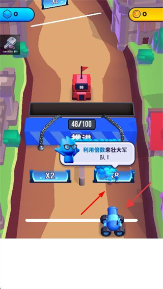 1、游戏初始阶段,利用倍数选项壮大自己的小兵队伍,提升兵力规模。