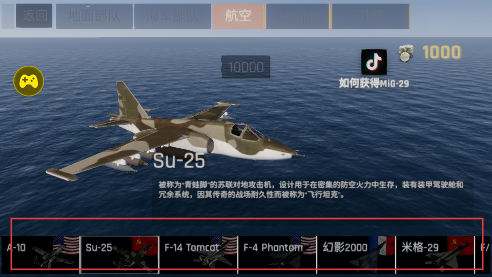 2、在部队选择界面,可选择航空部队,这些战机具备不同的作战能力,可根据任务需求选择。