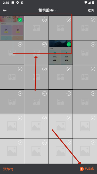 3、在图片选择页面,【勾选目标图片】后点击【已完成】,进入拼图编辑页面。