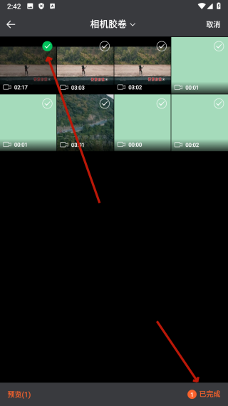 3、在视频选择页面【勾选目标视频】后点击【已完成】,进入视频导入确认页面。