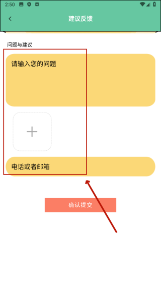 3、在建议反馈页面【输入问题与建议、电话或邮箱】。