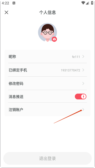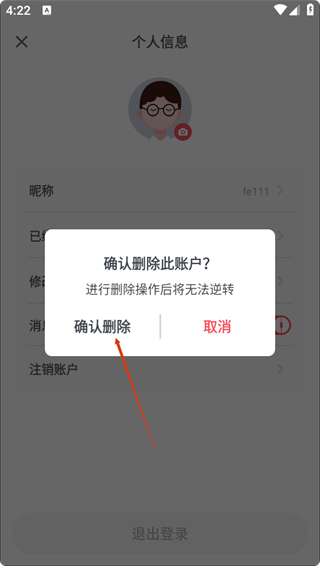 3、在个人信息界面,点击【注销账户】选项,可弹出账户删除确认框。