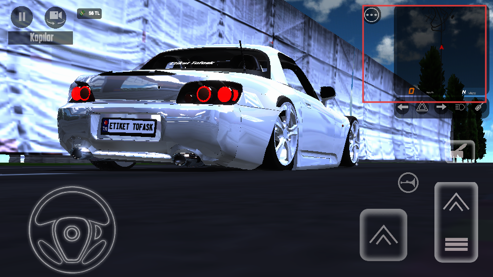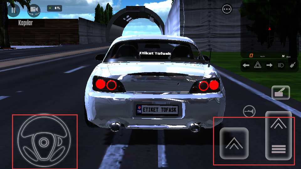 3、驾驶时,通过左侧虚拟方向盘控制车辆转向,右侧按钮控制车速。