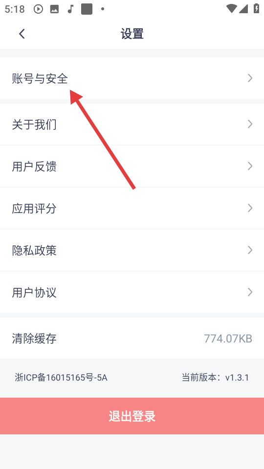 3、进入【设置】页面,点击【账号与安全】可进行密码修改或账号注销等操作。