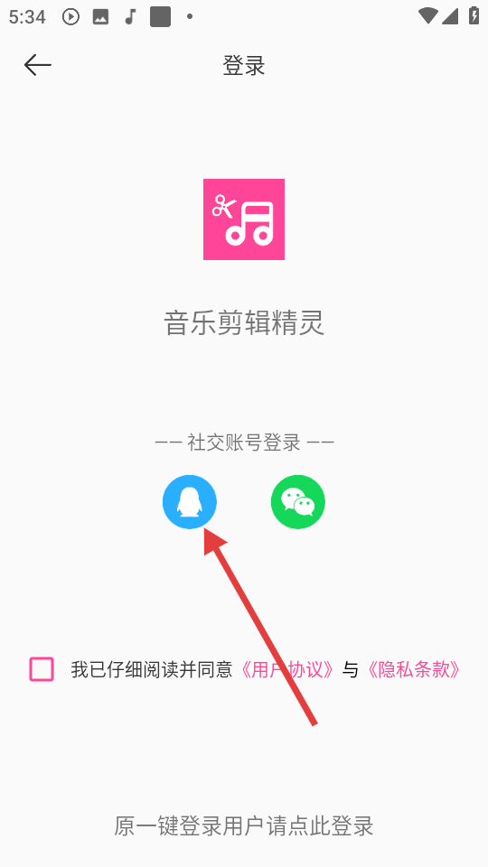 3、在登录页面点击蓝色QQ图标进行社交账号登录。