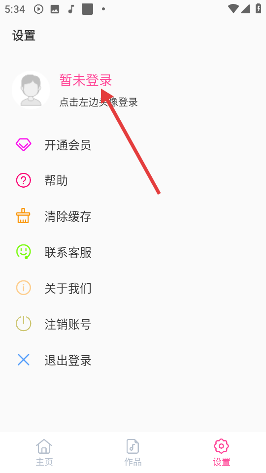 2、在设置页面点击【暂未登录】处的左边头像进入登录页面。