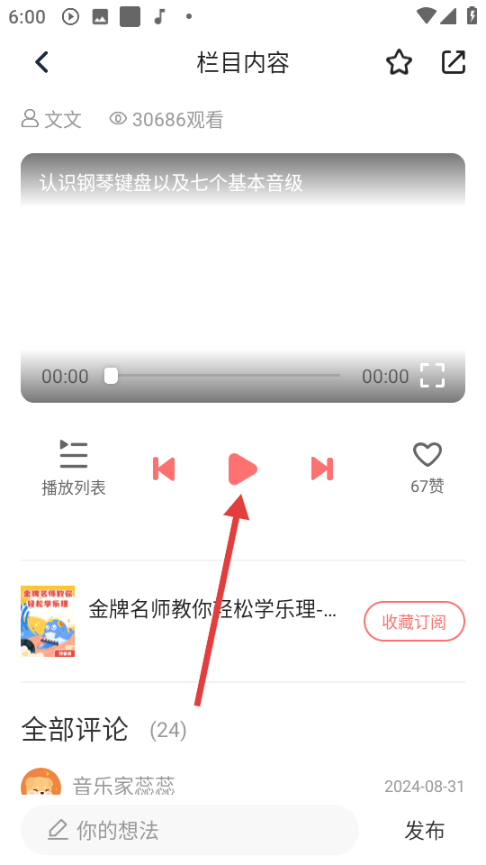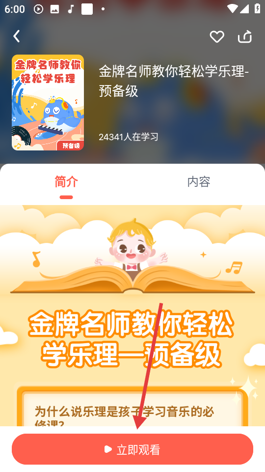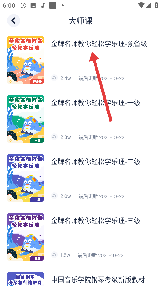 2、在大师课列表中,点击【金牌名师教你轻松学乐理-预备级】可进入该课程。