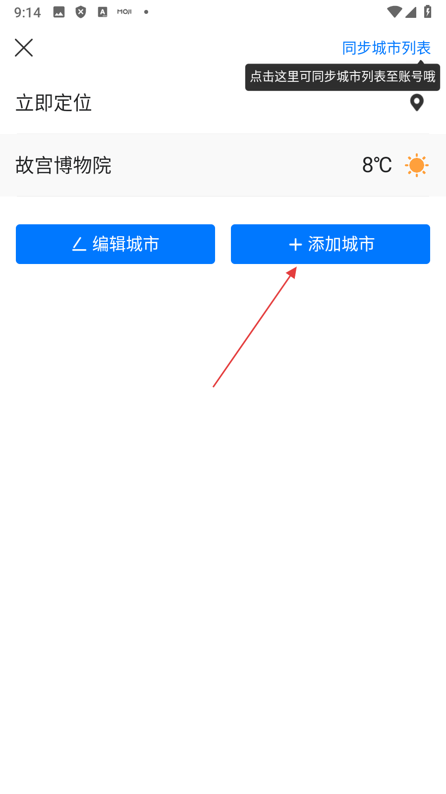 1、点击顶部【添加城市图标】,进入城市管理页面。