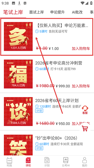 4、在添加计划界面,选择心仪的计划如“时评中的申论考点”,点击【加入计划】按钮,可添加该学习计划。