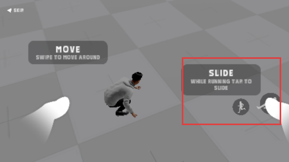 4、在奔跑时点击【SLIDE】对应的按钮,执行滑行动作,学会滑行操作。