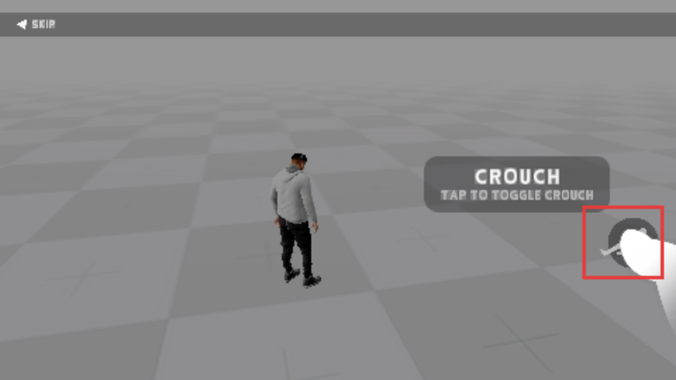 3、点击【CROUCH】对应的按钮,切换角色蹲伏状态,掌握蹲伏操作。