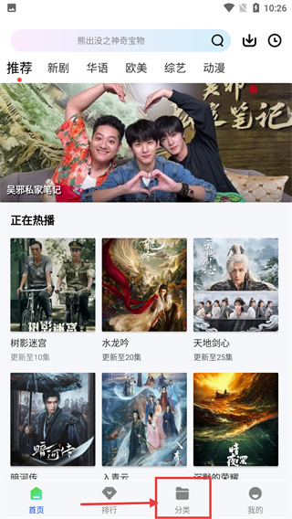 1、在APP首页,点击底部导航栏的【分类】选项,可进入分类界面。