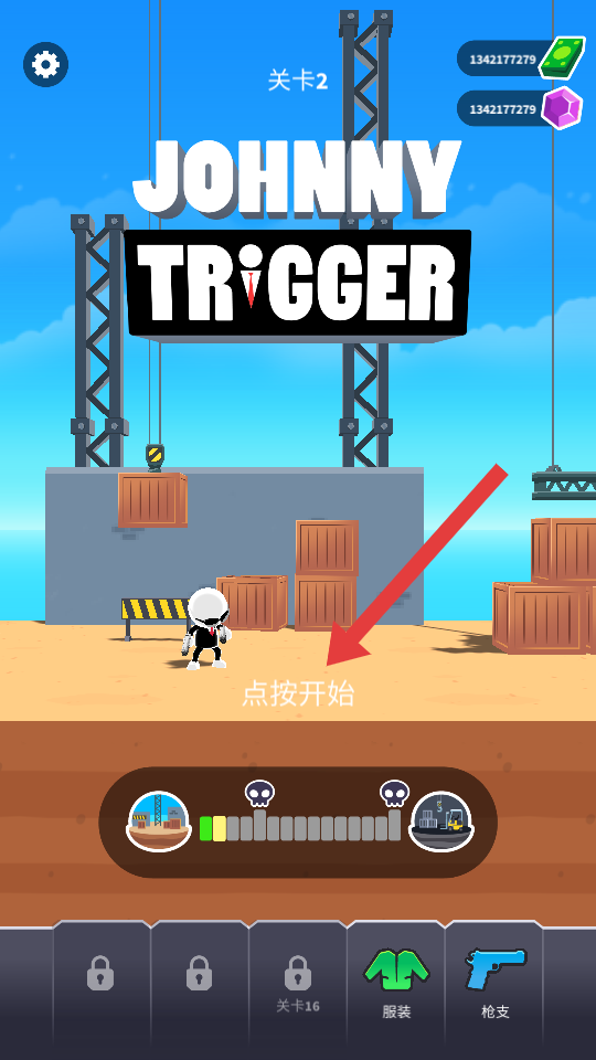 1、点击【点按开始】,进入“关卡2”开始挑战。